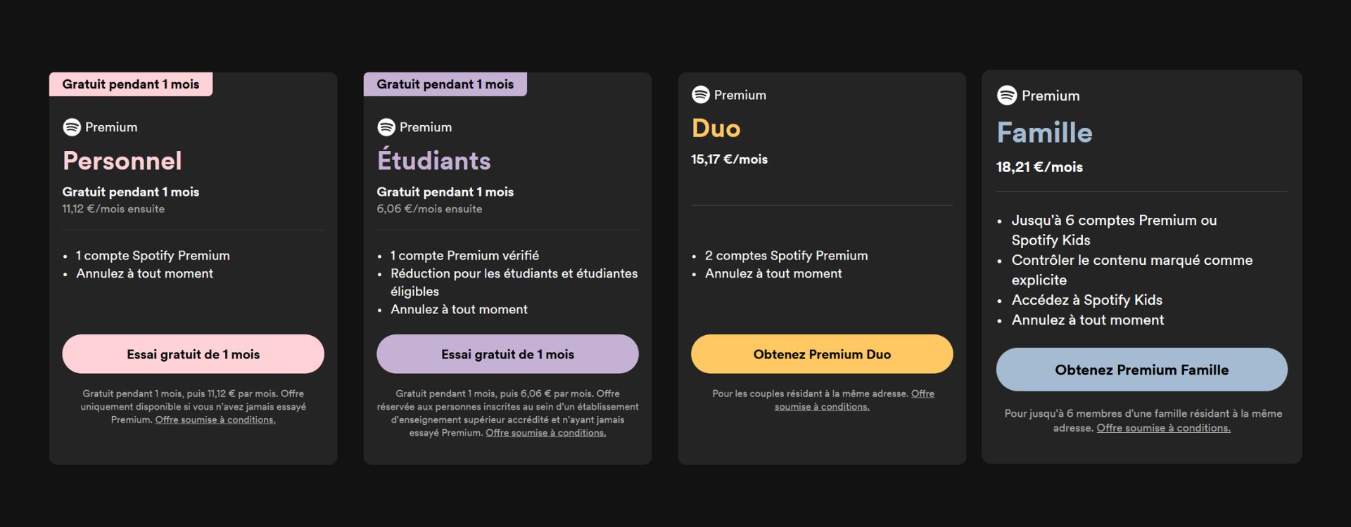 L'abonnement Premium Personnel passe ainsi de 10,99 à 11,12 euros, la formule étudiante de 5,99 à 6,06 euros, l'offre Duo de 14,99 à 15,117 euros, et l'abonnement Premium Famille de 17,99 à 18,21 euros.
