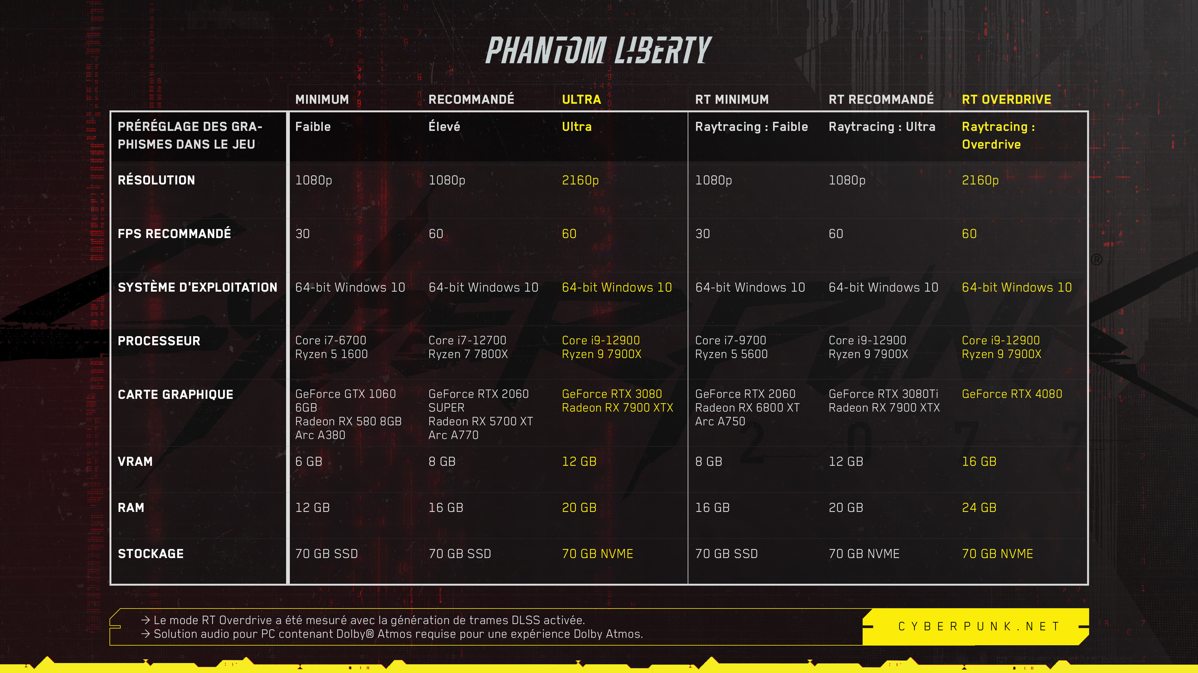 L'extension Phantom Liberty est prévue pour le 26 septembre 2023. Elle est conçue pour tirer pleinement parti des dernières avancées en matière de matériel et de logiciels. En conséquence, CD Projekt RED a annoncé que les exigences matérielles ont été revues à la hausse.