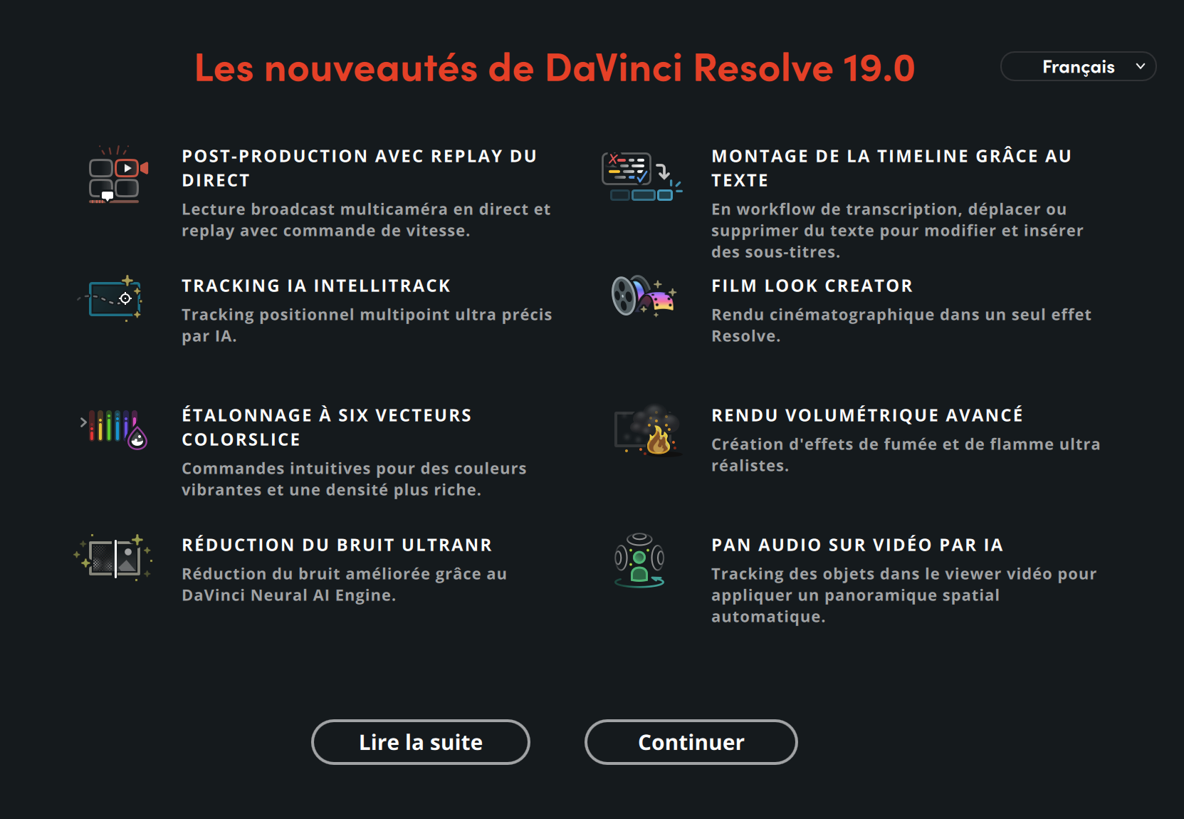 Principales nouvelles fonctionnalités de DaVinci Resolve 19 :