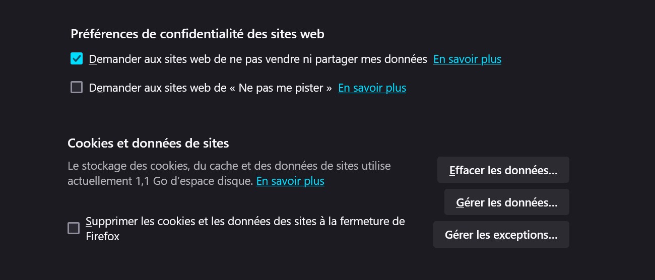 Pour pallier la disparition de "Do Not Track", Firefox intègre désormais le Global Privacy Control (GPC). Ce standard, soutenu par des lois dans certaines régions (comme le RGPD en Europe ou la CCPA en Californie), permet d’indiquer aux sites que vous refusez la vente ou le partage de vos données. Contrairement à "Do Not Track", le GPC gagne en reconnaissance et en adoption.