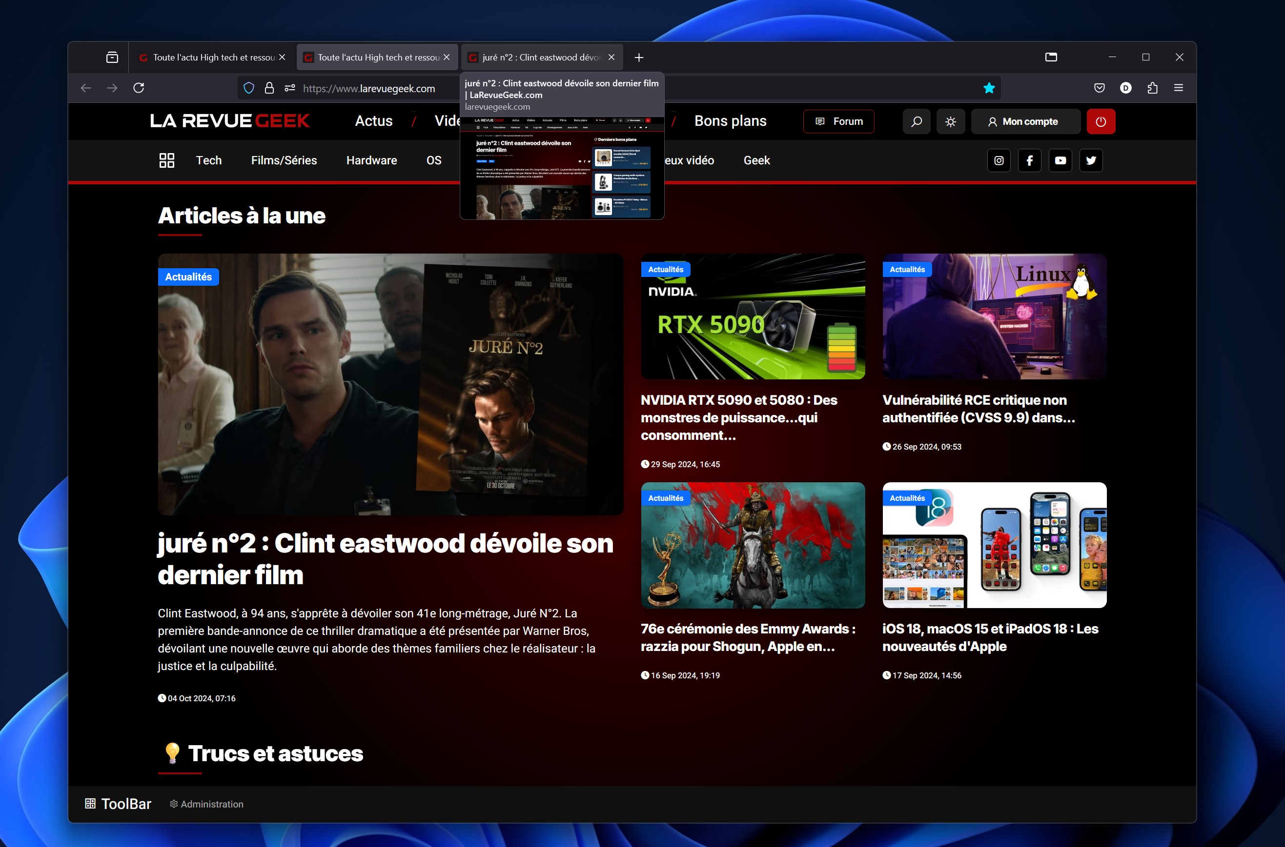 Mozilla poursuit son travail d'amélioration continue de l'interface de Firefox. Parmi les nouveautés les plus notables, il est désormais possible de prévisualiser un onglet en le survolant avec la souris. Cette fonctionnalité, introduite pour certains utilisateurs avec la version 129, est désormais accessible à tous.