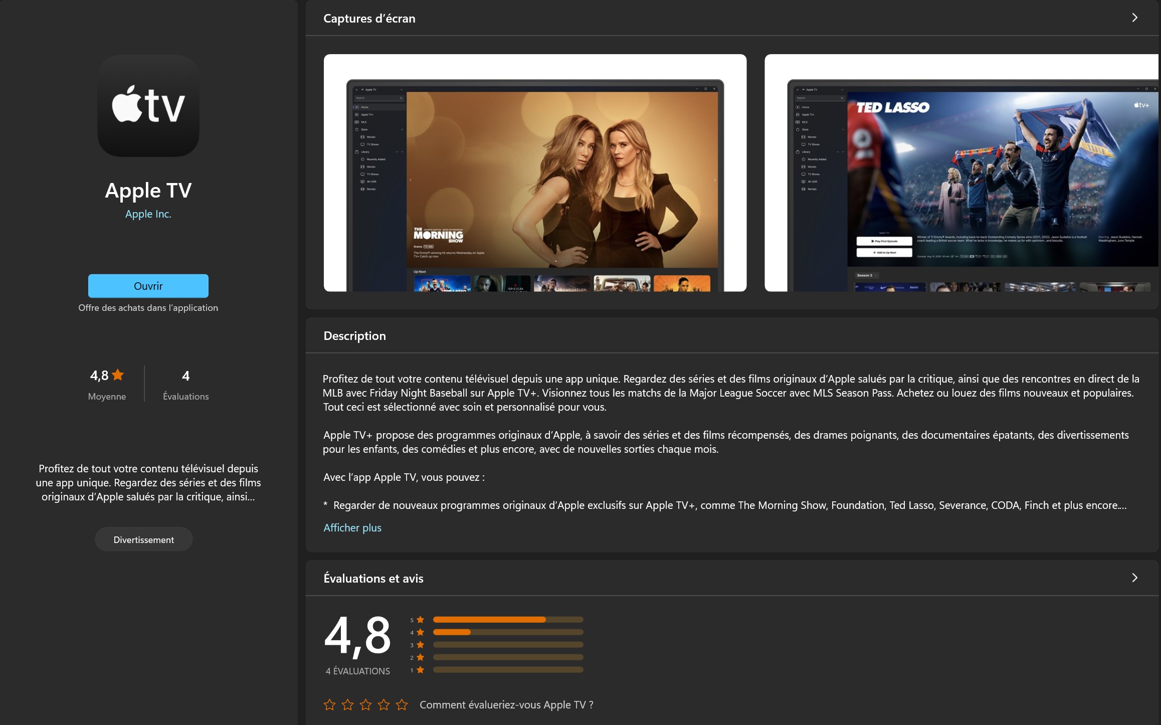 Lancement officiel de l'application Apple TV sur Windows