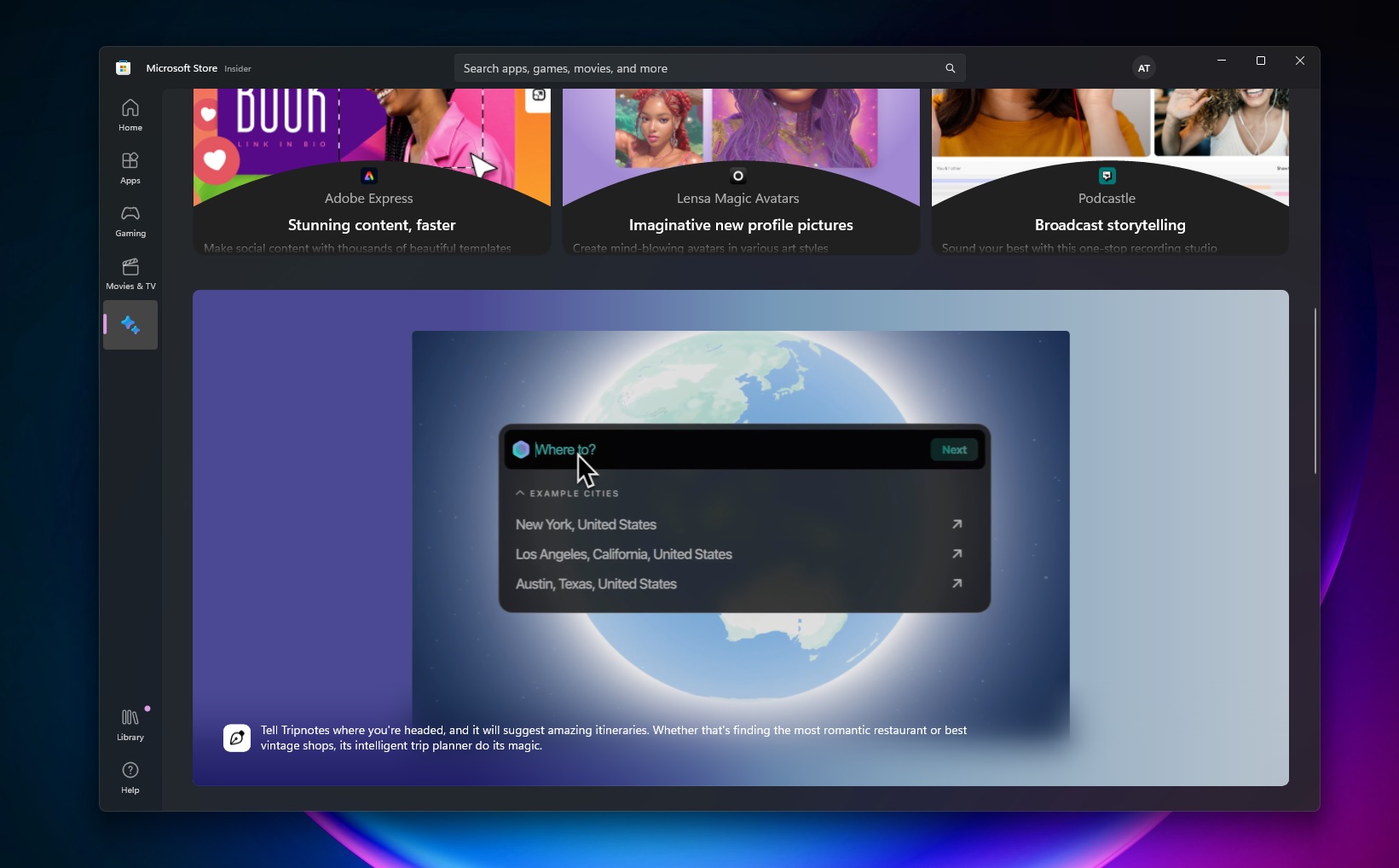 L'AI Hub ne se contente pas de présenter des applications soutenues par l'IA. Grâce à l'expertise de Microsoft en matière d'IA, ce nouvel espace propose une collection soigneusement sélectionnée des meilleures expériences d'IA conçues par Microsoft et par la communauté de développeurs au sens large. Que ce soit des outils créatifs comme Luminar Neo et Lensa, des boosters de productivité tels que Descript, Krisp, et Podcastle, ou même des logiciels de planification de voyages tels que Tripnotes, l'AI Hub couvre un large éventail d'applications.