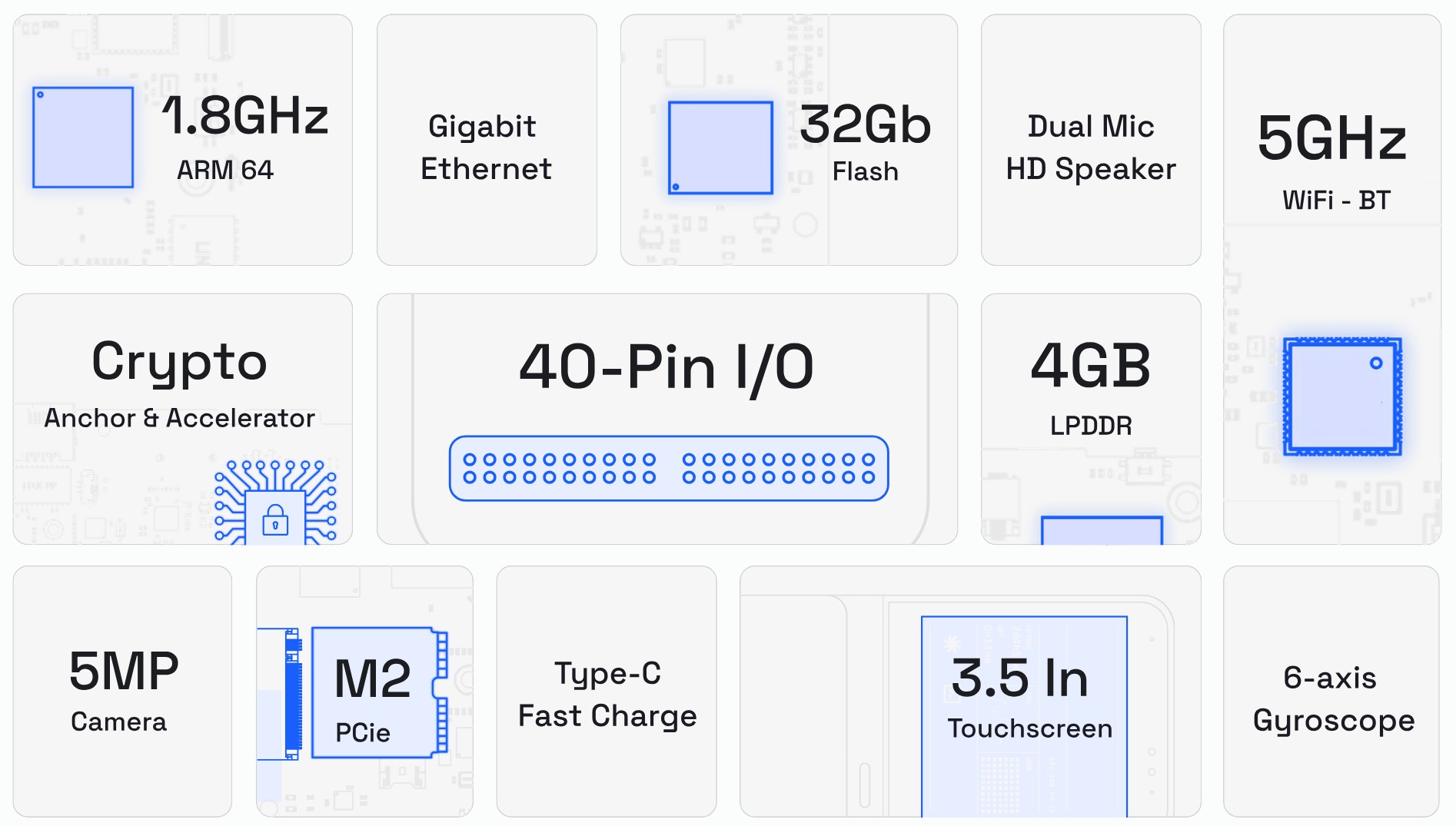 - Stockage : 32 Go de eMMC, extensibles via un port M.2.