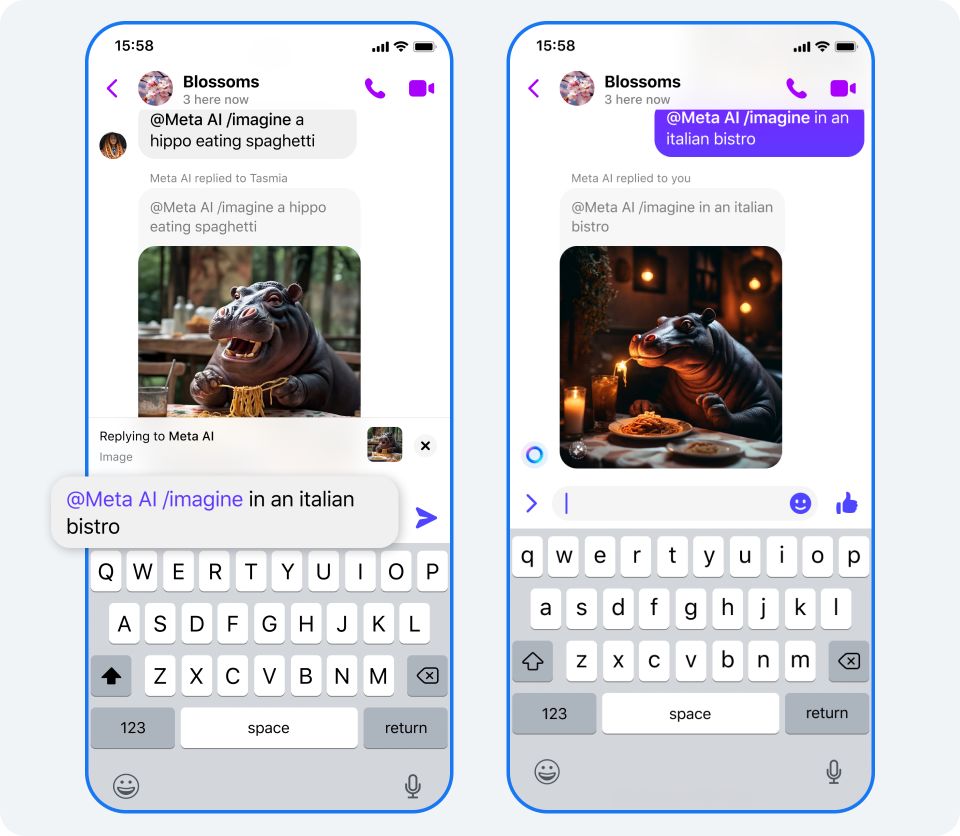 L'une des caractéristiques les plus innovantes de "imagine with Meta AI" est sa facilité d'utilisation intégrée dans les plateformes de messagerie populaires comme Messenger et WhatsApp, ainsi que sur Instagram. Les utilisateurs peuvent simplement taper une description, et l'IA génère une image correspondante en quelques secondes. Cette intégration rend l'outil accessible à un large public, démocratisant la création de contenu AI.