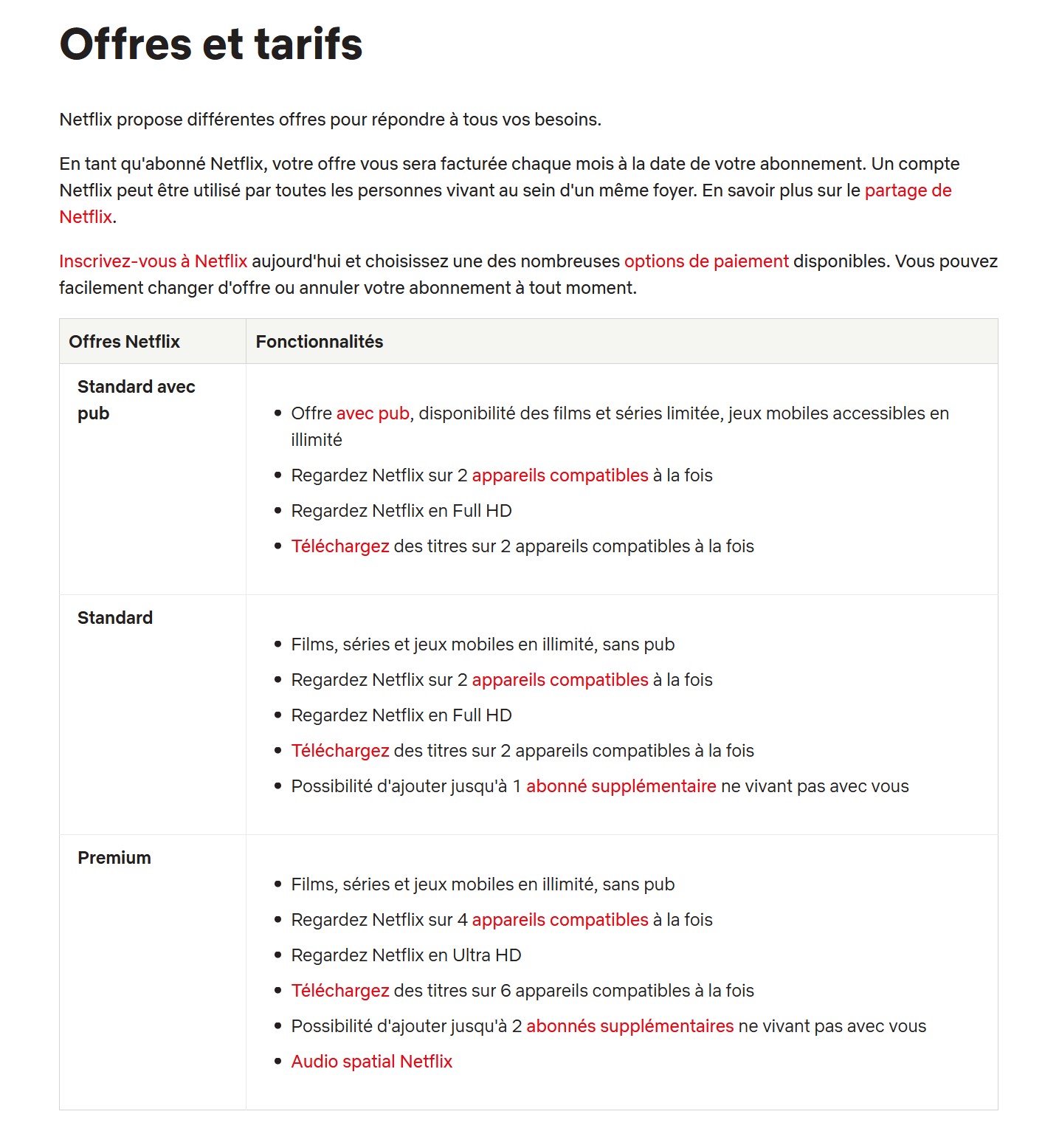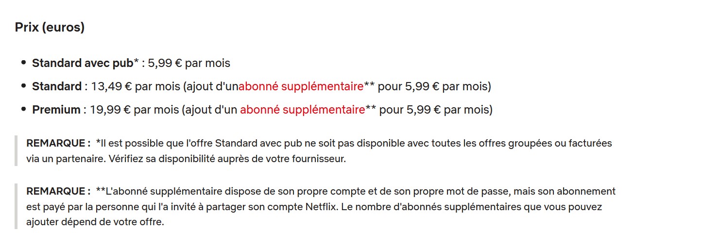Désormais, les abonnés en France ont le choix entre plusieurs options :