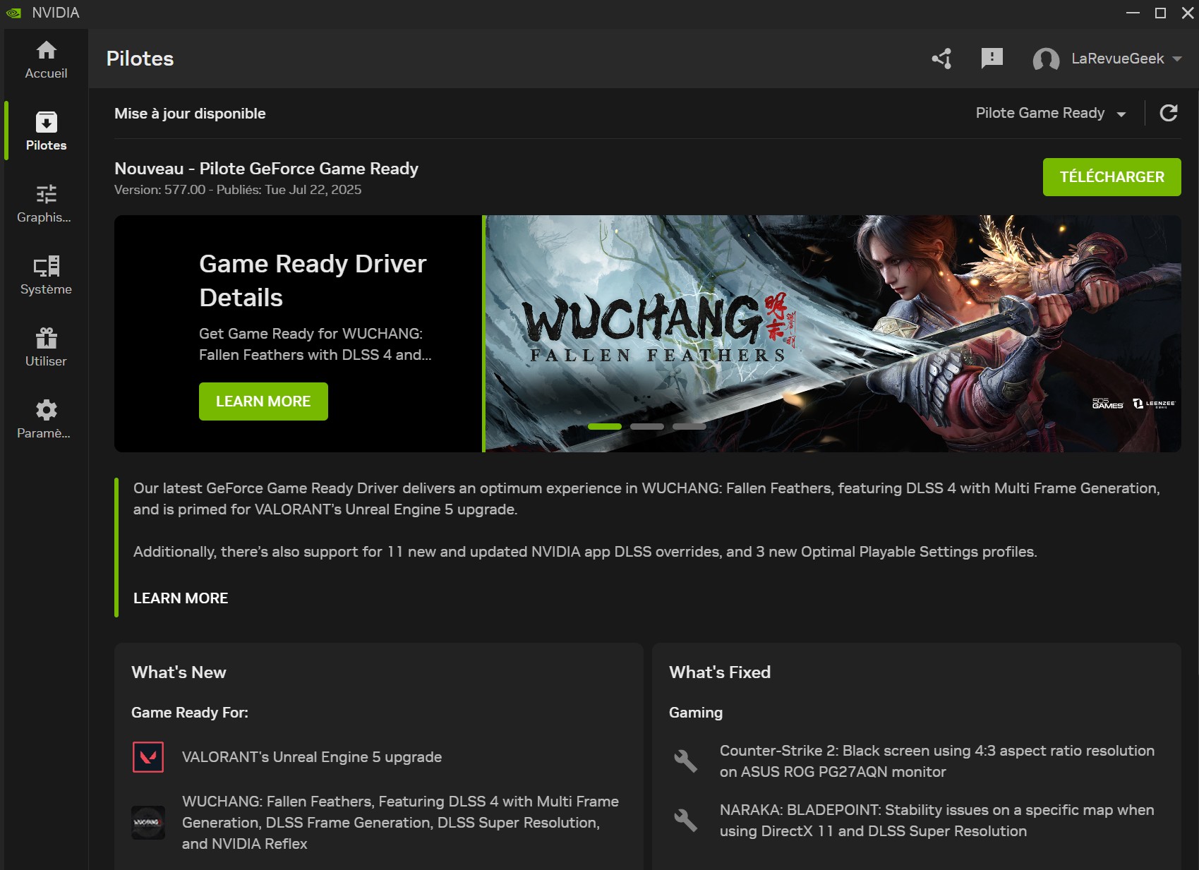 NVIDIA déploie le pilote GeForce GRD 577.00 : DLSS 4 à l'honneur pour WUCHANG et Valorant