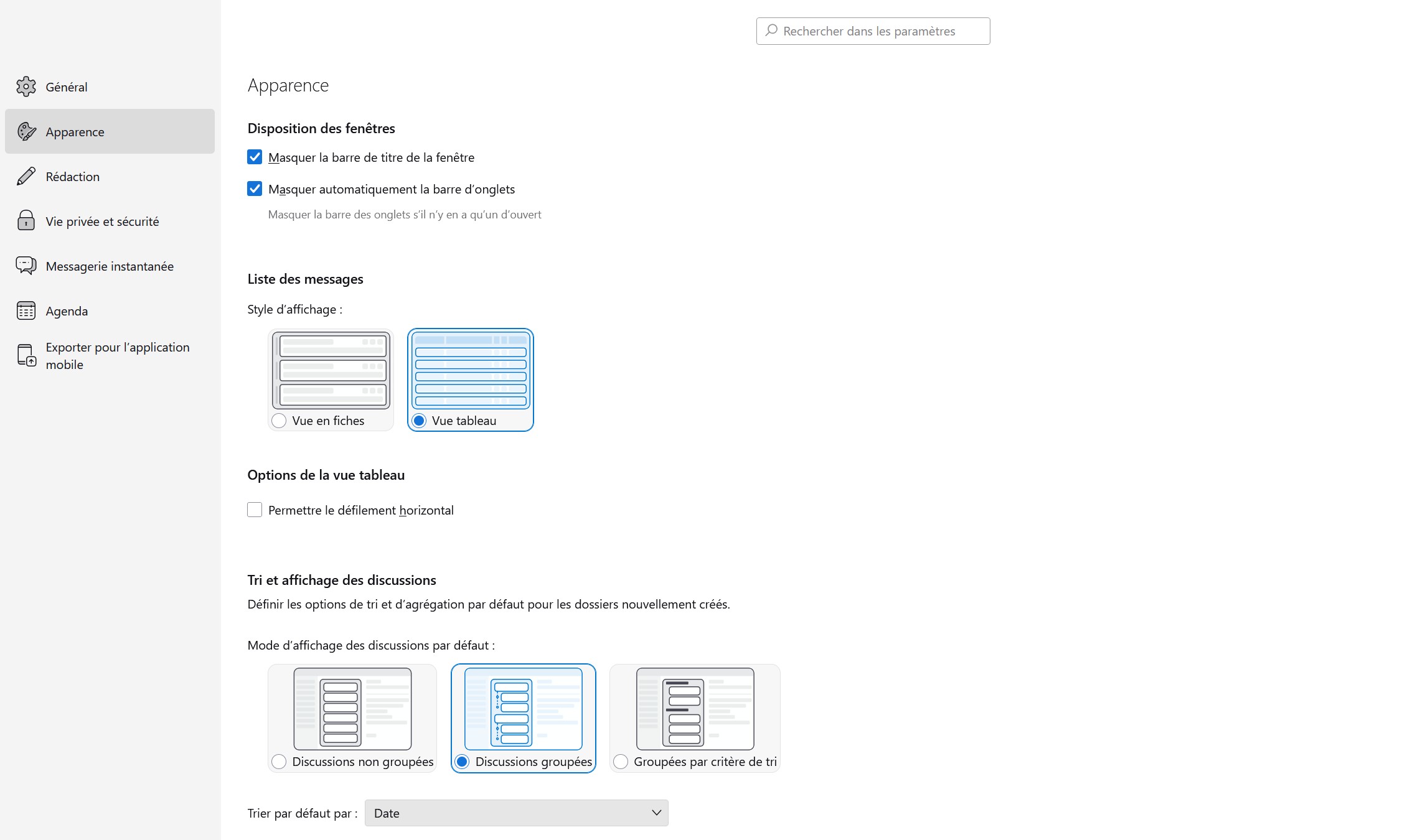 Ajuster précisément le tri et l'affichage des conversations.