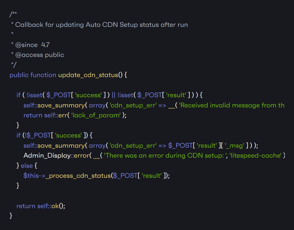 Le mécanisme d'échappement de la sortie a également été pointé du doigt dans cette faille du plugin LiteSpeed, en particulier dans la fonction update_cdn_status. Cette fonctionnalité, destinée à informer les administrateurs, offre une porte d'entrée pour l'injection de scripts intersites (XSS). Il suffit à tout utilisateur disposant d'un accès à wp-admin de déclencher cette vulnérabilité qui peut être exploitée facilement grâce à l'installation par défaut du plugin LiteSpeed.