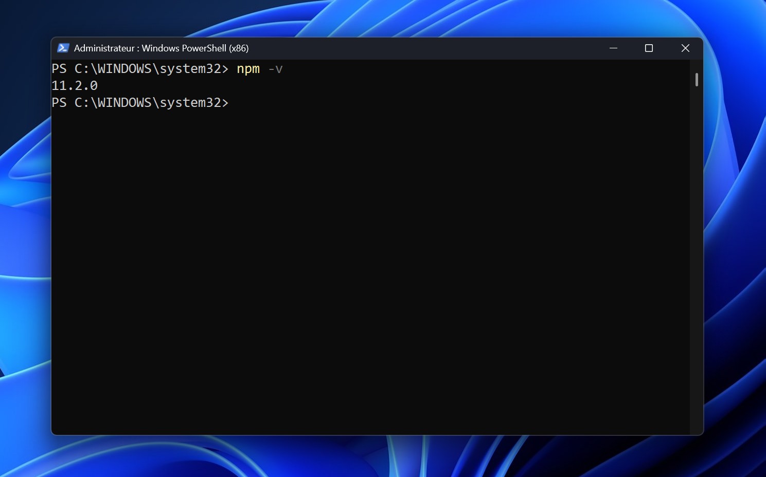 Si tout est configuré correctement, la version npm s’affichera sans erreur.