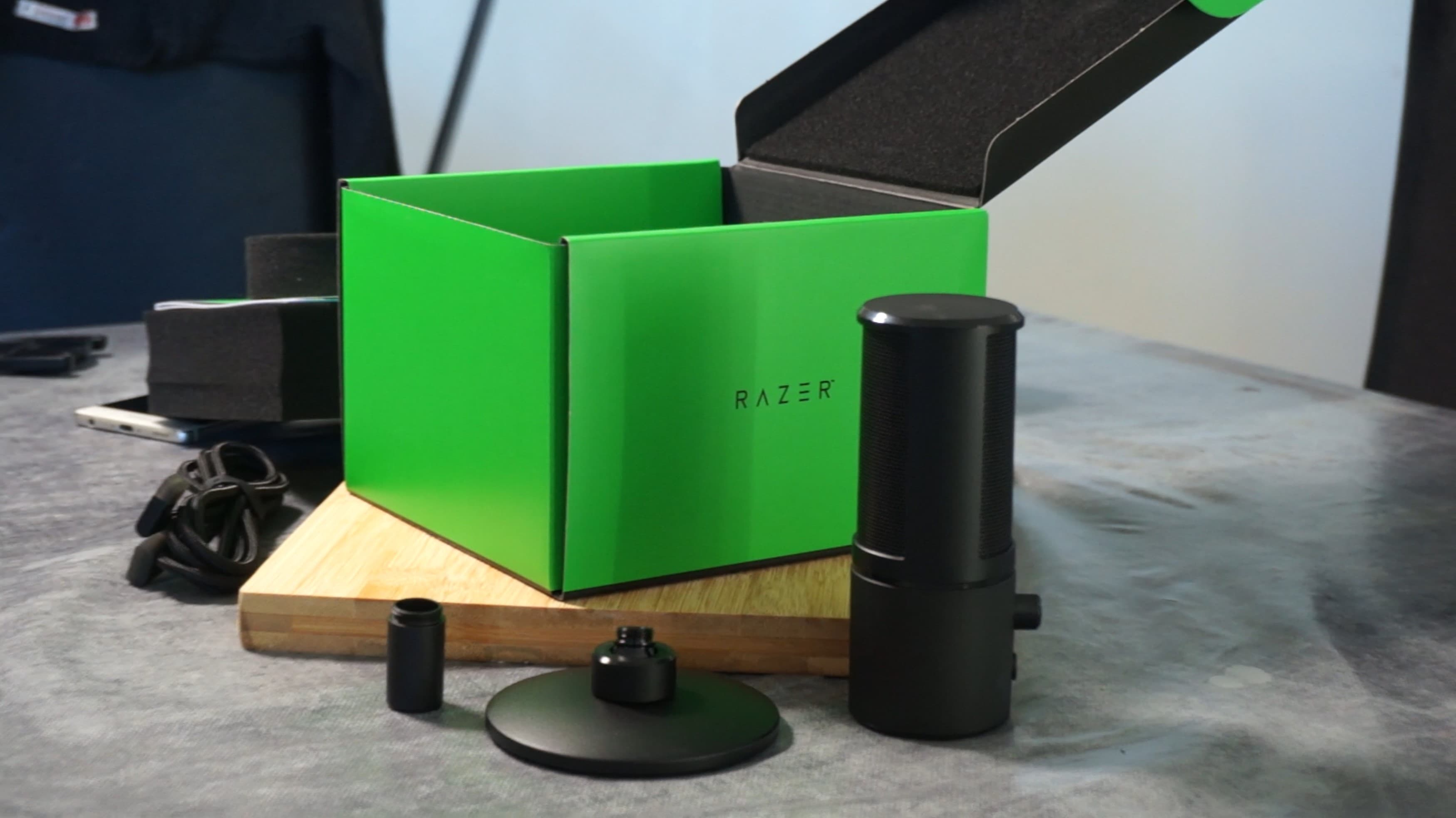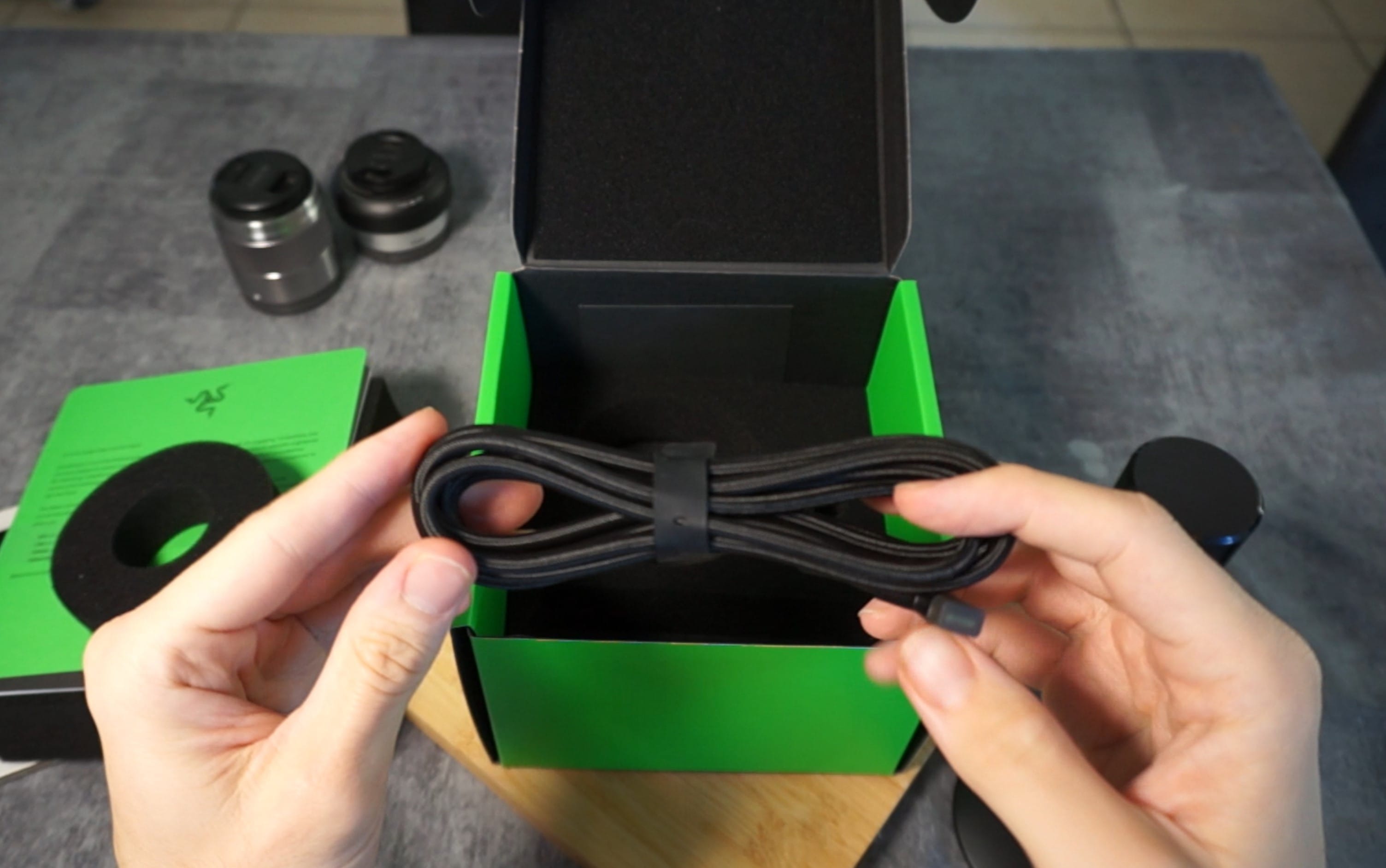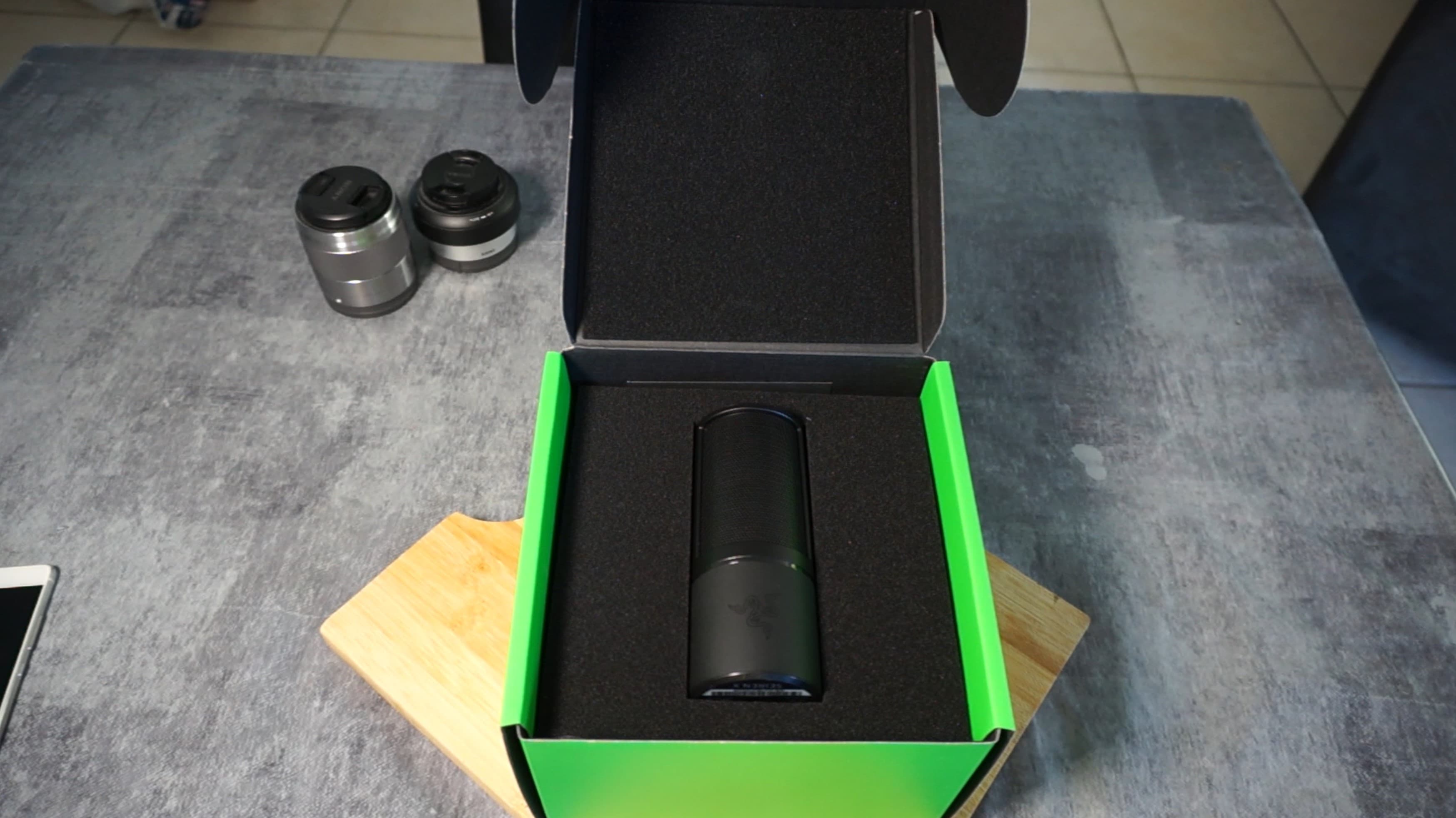 Le micro est livré dans une très jolie boîte aux couleurs de Razer arborant donc des colorations verte et noire du plus bel effet. On voit tout de suite qu'un gros travail a été réalisé côté packaging et pour le coup il n'a rien à envier à Apple de ce côté-là.